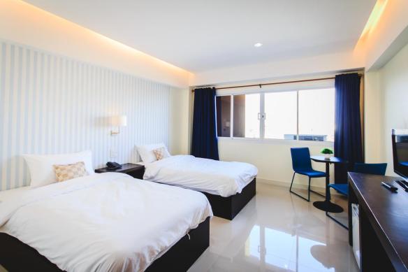ห้องเตียงแฝด 2 เตียงเดี่ยว 30 ตร.ม. ทิวทัศน์ เครื่องปรับอากาศ โทรทัศน์จอแบนบิเดต์ สุขา อ่างอาบน้ำหรือฝักบัว โต๊ะทำงาน โทรทัศน์ โทรศัพท์ ตู้หรือห้องเก็บเสื้อผ้า กระดาษชำระ