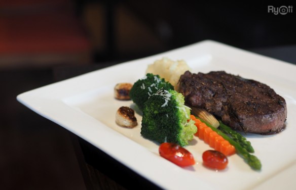 Beef Tenderlion Steak (สเต๊กสันในย่างนุ่มๆ) : สเต๊กเนื้อชิ้นใหญ่กำลังพอดี เสิร์ฟมาพร้อมผักย่าง และมันบดเป็นเครื่องเคียง สเต๊กมีการย่างระดับมีเดียมแรร์ ทำให้ได้เนื้อที่สุกแบบพอดี เมื่อทานเนื้อเปล่าๆ เนื้อมีความนุ่มมีรสเค็มอ่อนๆ จากเกลือในการย่าง ทานเนื้อสเต๊กคู่กับมันบดและผักย่างบอกได้เลยว่าเข้ากันสุดๆ