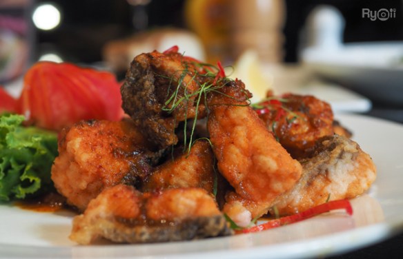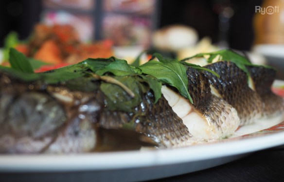 Fried Striped Snake-Head Fish with Spicy Mixed Herb (ปลาช่อนลุยสวน) : ทางร้านเลือกใช้ปลาช่อนตัวใหญ่ ปลามีความสด เนื้อแน่น ไม่มีกลิ่นคาว เมื่อทานคู่กับน้ำจิ้มแจ่วจะมีรสเปรี้ยวเค็มเผ็ดไม่มาก สำหรับใครที่ชอบทานเผ็ดแนะนำให้ทานคู่กับน้ำจิ้มซีฟู้ด ซึ่งตัวน้ำจิ้มซีฟู้ดจะมีรสชาติเปรี้ยวเผ็ดจี๊ดจ๊าด แนะนำให้ทานผักเป็นเครื่องเคียงเพื่อลดความเผ็ด โดยในส่วนนี้ถ้าใครที่ไม่ชอบทานเผ็ดอาจจะมองว่าเผ็ดเกินไป และที่สำคัญเนื่องจากปลาช่อนจะมีก้างค่อนข้างเยอะถ้าพาเด็กมาทานอาหารด้วยอาจจะต้องระวัง