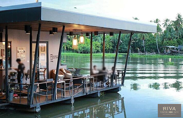 ใครที่อยากสัมผัสน้ำคลายร้อนต้อง ร้านนี้เลย RIVA floating cafe อีกหนึ่งคาเฟ่ที่บอกก่อนว่าถึงเนื้อถึงน้ำจริงๆ ค่ะ เพราะเป็นคาเฟ่ที่มีที่นั่งห้อยขาแช่น้ำ พร้อมกับจิบกาแฟ ทานขนมหวานไปพลางๆ เข้ากันสุดๆ เลยยยยย หรือถ้านั่งนานไปแล้วรู้สึกหิว ทางร้านก็มีเมนูอาหารว่างให้เลือกทานอย่างเพลินๆ ด้วยนะคะ มาจิบกาแฟชมบรรยากาศกันเร็วทุกคน ราคาเมนูเริ่มต้นที่ 95 บาท