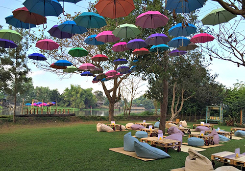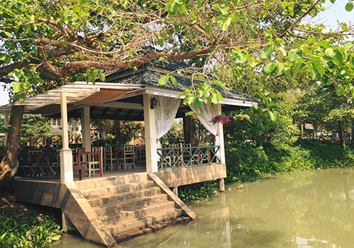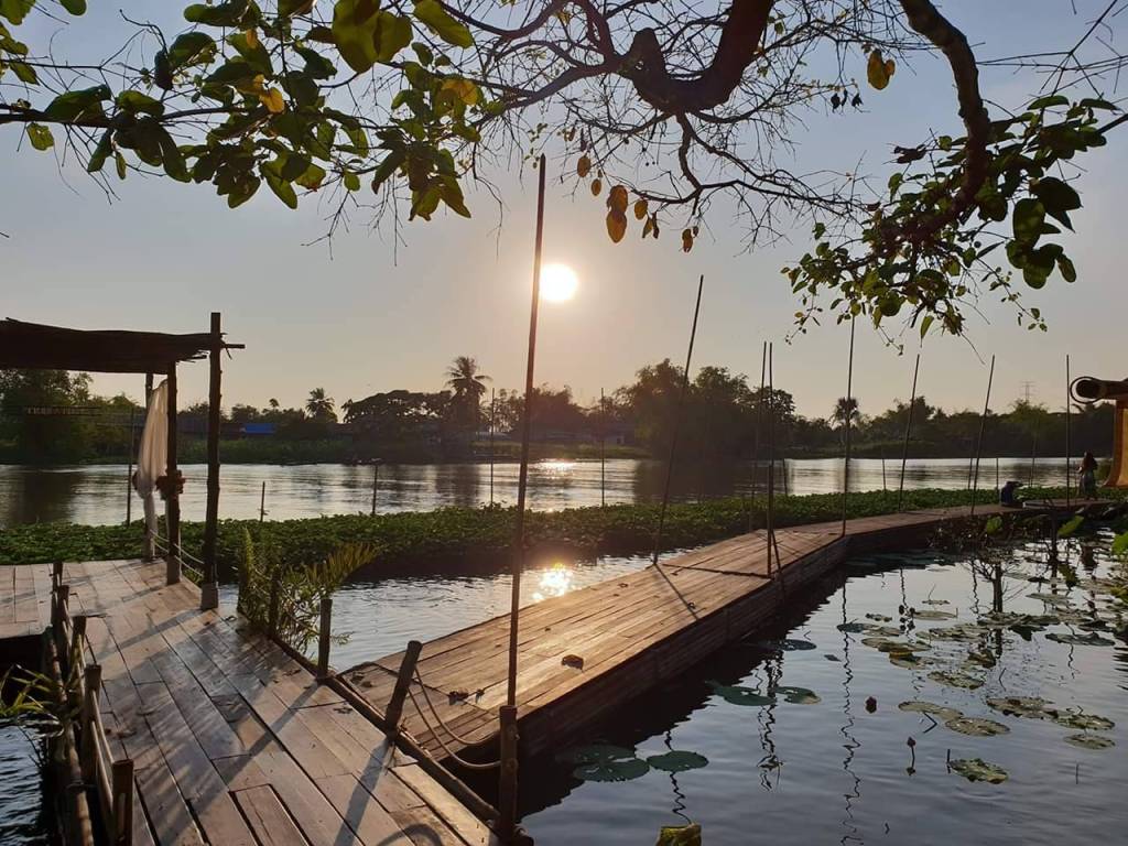 ร้านอาหารที่เป็นคาเฟ่ริมแม่น้ำท่าจีน ติดตลาดน้ำลำพญาค่ะ ในร้านตกเเต่งเเบบบรรยากาศสบายๆ เหมือนนั่งเล่นในสวน มีสนามหญ้าสีเขียวสบายตามากๆ เลยค่ะ สามารถเลือกนั่งได้ทั้งด้านในร้าน หรือสนามหญ้ารับลมชมธรรมชาติริมน้ำก็ได้ค่ะ อาหารที่ร้านก็มีเมนูให้เลือกเยอะมากค่ะ ทั้งอาหารคาว อาหารหวานเเละเครื่องดื่ม เมนูเด็ดประจำร้านก็คือเมี่ยงคำกลีบบัว โรตีเเกงเขียวหวาน ยังไงต้องมาลองดูนะคะ นั่งชิคๆ ริมน้ำ ทานอาหารอร่อยๆ เเค่นี้ก็ฟินมว้ากก~ ส่วนเมนูเริ่มต้นที่ 55 บาท ขึ้นไป