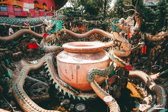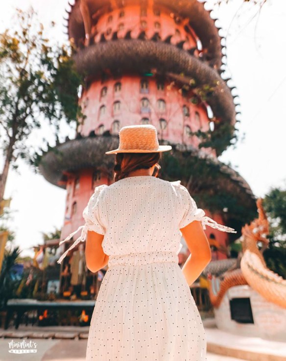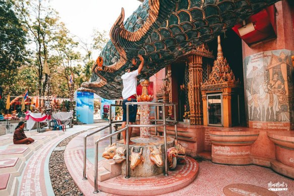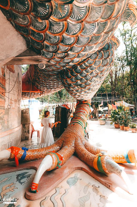 วัดสามพรานโดดเด่นที่ตึกสีชมพูสูง 17 ชั้น มีมังกรตะกายฟ้าโอบรอบ ที่เท้ามังกร เราสามารถมาขอพรให้ชีวิตรุ่งเรืองในด้านต่างๆ ตามแต่ละเล็บของมังกรได้ และที่พีคคือการเดินขึ้นไปบนยอดตึกค่ะ เพราะเราต้องเดินภายในท้องพญามังกรขึ้นไป ! ไม่ได้เป็นบันไดวน แต่เป็นอุโมงค์ทางลาด ที่อยู่ภายในตัวมังกร คืออะเมซิ่งมากกกๆ!!