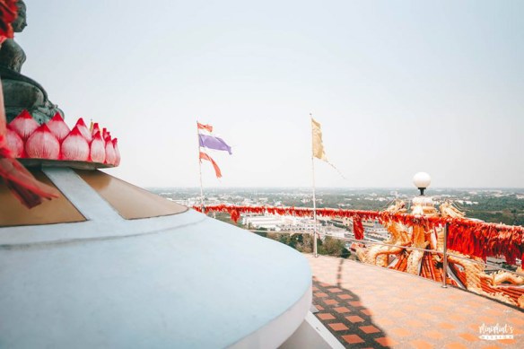 ชั้นบนสุด ให้เรานำผ้าแดงที่เขียนชื่อเรา และครอบครัว อธิษฐานขอพรและนำมาผูกไว้ตรงระเบียง เพื่อความเป็นสิริมงคล