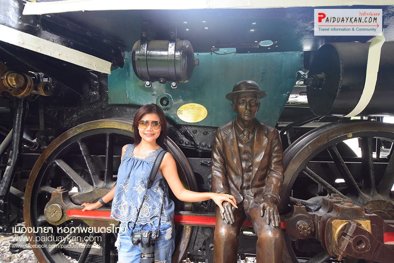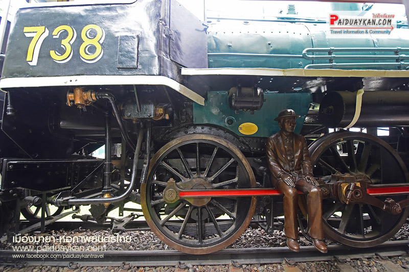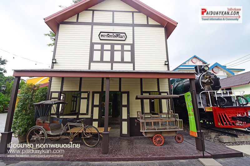 เป็นการจำลองความเกี่ยวข้องของภาพยนตร์ไทยกับการรถไฟในอดีต ด้วยหัวจักรไอน้ำ โมกุล ซี 56 หมายเลข 738 ซึ่งเป็นหนึ่งใน หัวรถไฟที่ผลิตจากญี่ปุ่น เพื่อนำมาใช้ในสมัยสงครามโลกในไทย ต่อมาเมื่อสงครามสิ้นสุดลง รัฐบาลไทยได้ซื้อหัวรถจักรเหล่านี้เพื่อ ใช้ในกิจการรถไฟ เมื่อถึงเวลาปลดประจำการ จึงได้บริจาคให้แก่หน่วยงานต่างๆ ต่อมาหอภาพยนตร์ได้รับมอบหัว รถจักรไอน้ำนี้มา จากศูนย์วิทยาศาสตร์เพื่อการศึกษา เพื่อนำมาอนุรักษ์ และ จัดแสดงในโครงการรถไฟสายภาพยนตร์ เพื่อรำลึกถึงเมื่อใน อดีตคราว ที่รถไฟและประวัติศาสตร์ภาพยนตร์มีความเกี่ยวเนื่องกัน ข้างใต้รถไฟ มีรูปปั้น ไอ้หน้าตาย บัสเตอร์ คีตัน (2437-2509) นักแสดงตลกชาวอเมริกัน มีชื่อเสียงรุ่งโรจน์ในยุคภาพยนตร์เงียบ ด้วยความสามารถด้านกายกรรมและสีหน้าที่เฉยชาเสมอ จนได้ ฉายาว่า “ไอ้หน้าตาย” รูปปั้นนี้จำลองจากบทบาทพนักงานขับรถไฟ ในภาพยนตร์ที่ดีเด่นที่สุดตลอดกาลเรื่องหนึ่งของโลก บริเวณชานชาลาของสถานี ยังเปิดเป็นร้านอาหารและร้านกาแฟขนาดย่อมให้บริการผู้มาเยี่ยมเยือนอีกด้วย ใกล้กับสถานีรถไฟ ศินิมา มีบ่อน้ำขนาดเล็ก ภายในบ่อน้ำ มีรูปปั้นของเหล่าบรรดาช่างภาพ และ คุณ มานี สุมนนัฏ หรือ ฉวีวรรณ ดอกไม้งาม ดาราสาวชั้นนำชาวไทย สังกัดบริษัทภาพยนตร์เสียงศรีกรุง จำกัด มีผลงานการแสดง ประมาณ 3 ปี ระหว่าง พ.ศ. 2478 – 2481 ซึ่งฝากผลงานการแสดงที่มีชื่อเสียงไว้หลากหลายเรื่อง