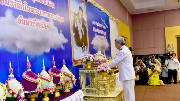 โดยมีหัวหน้าส่วนราชการ ข้าราชการ ทหาร ตำรวจ องค์กรปกครองส่วนท้องถิ่น นักเรียน นักศึกษา และประชาชน ร่วมวางพานพุ่มถวายราชสักการะ ซึ่งในปีนี้ถือเป็นวันครบรอบปีที่ 64 นับจากวันที่ 14 พฤศจิกายน พ.ศ. 2498 ที่พระบาทสมเด็จพระบรมชนกาธิเบศร มหาภูมิพลอดุลยเดชมหาราช บรมนาถบพิตร ทรงมีพระราชดำริที่จะคิดค้นวิจัยหาวิธีการทำฝนหลวง